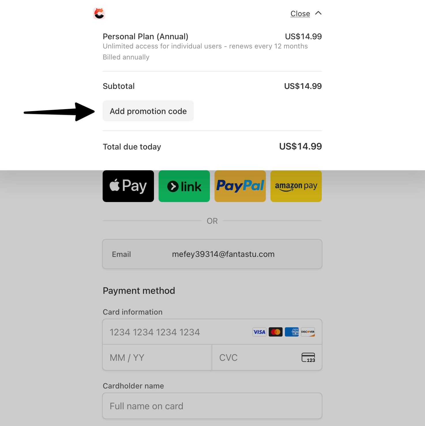 - 3. Pendant le processus de paiement Stripe, insérez votre coupon